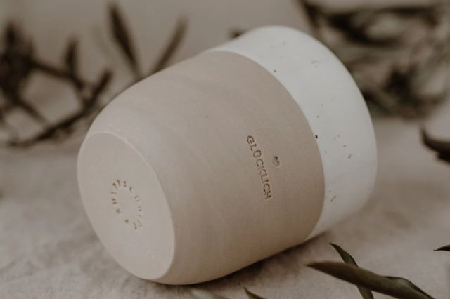 Schlicht und minimalistisch mit natürlichen Farbtönen und einer feinen Blindprägung „Glücklich“ – ideal für alle, die handgefertigte Keramik und unperfekte Perfektion schätzen.
